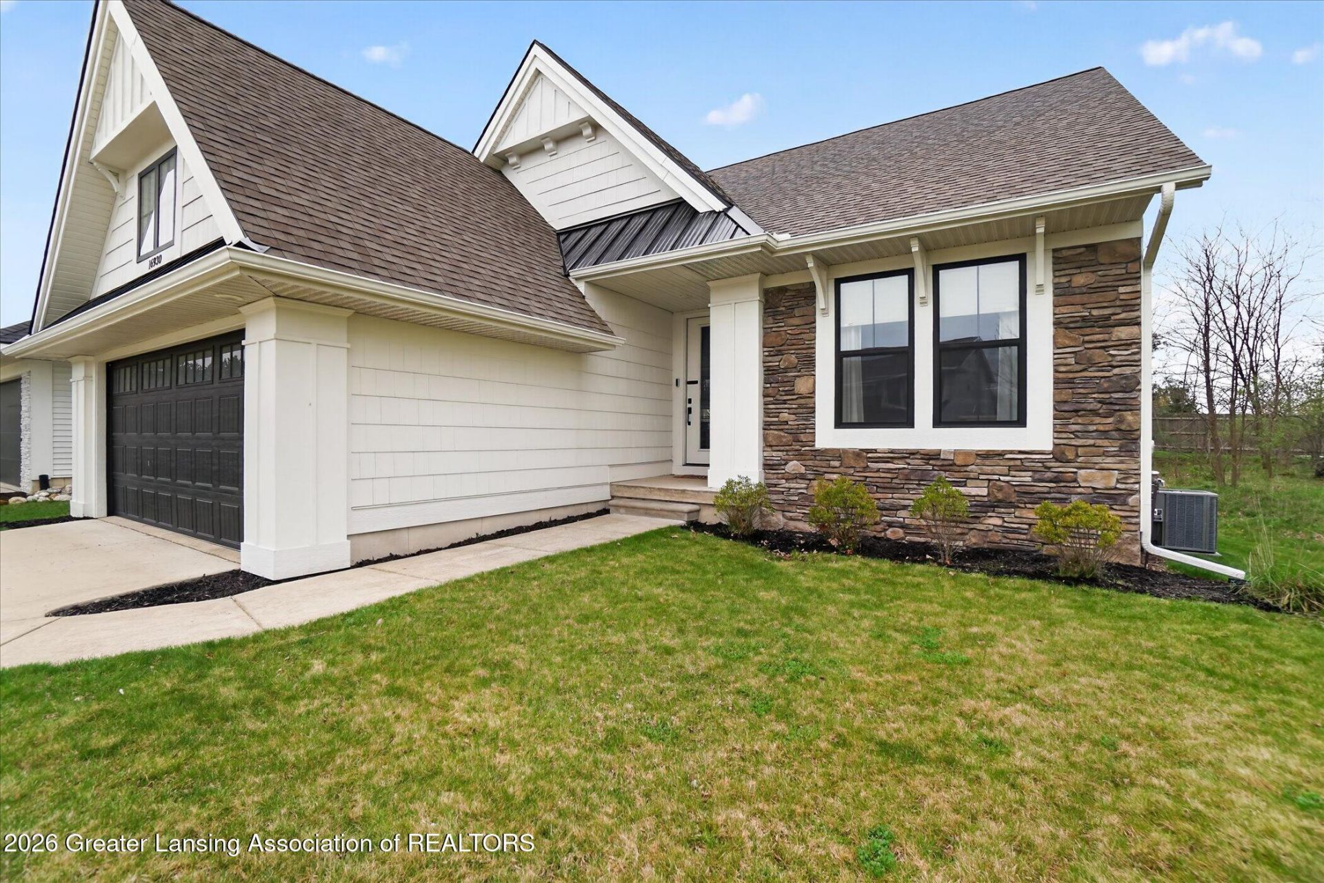 Welcome home to this exceptional HDI custom-built ranch where thoughtful design meets everyday luxury. Soaring 10-foot ceilings, oversized doors, elegant crown molding, and upgrades throughout set the tone from the moment you arrive. The open-concept layout flows effortlessly for both entertaining and everyday living. The stunning kitchen features an oversized island, white soft-close cabinets, quartz countertops, and a pot filler - perfect for the home chef. Natural light pours through a dramatic wall of windows at the rear of the home, drawing you in the moment you step inside. The primary suite is a true retreat, featuring two separate walk-in closets, double sinks, and a beautifully appointed spa-like shower. A flexible main-floor room adapts perfectly as a home office or additional bedroom, and the finished basement rounds out the space with two more bedrooms, a cozy TV room, and a full bath. All of this within Haslett schools, Lower Bath Township taxes, minutes from major highway access, and everyday conveniences right at your doorstep - including Meijer and the beloved Monticellos meat market just across the street. Gutters and radon mitigation system already installed by current owner for peace of mind. Homes like this dont sit long - schedule your private showing today!
